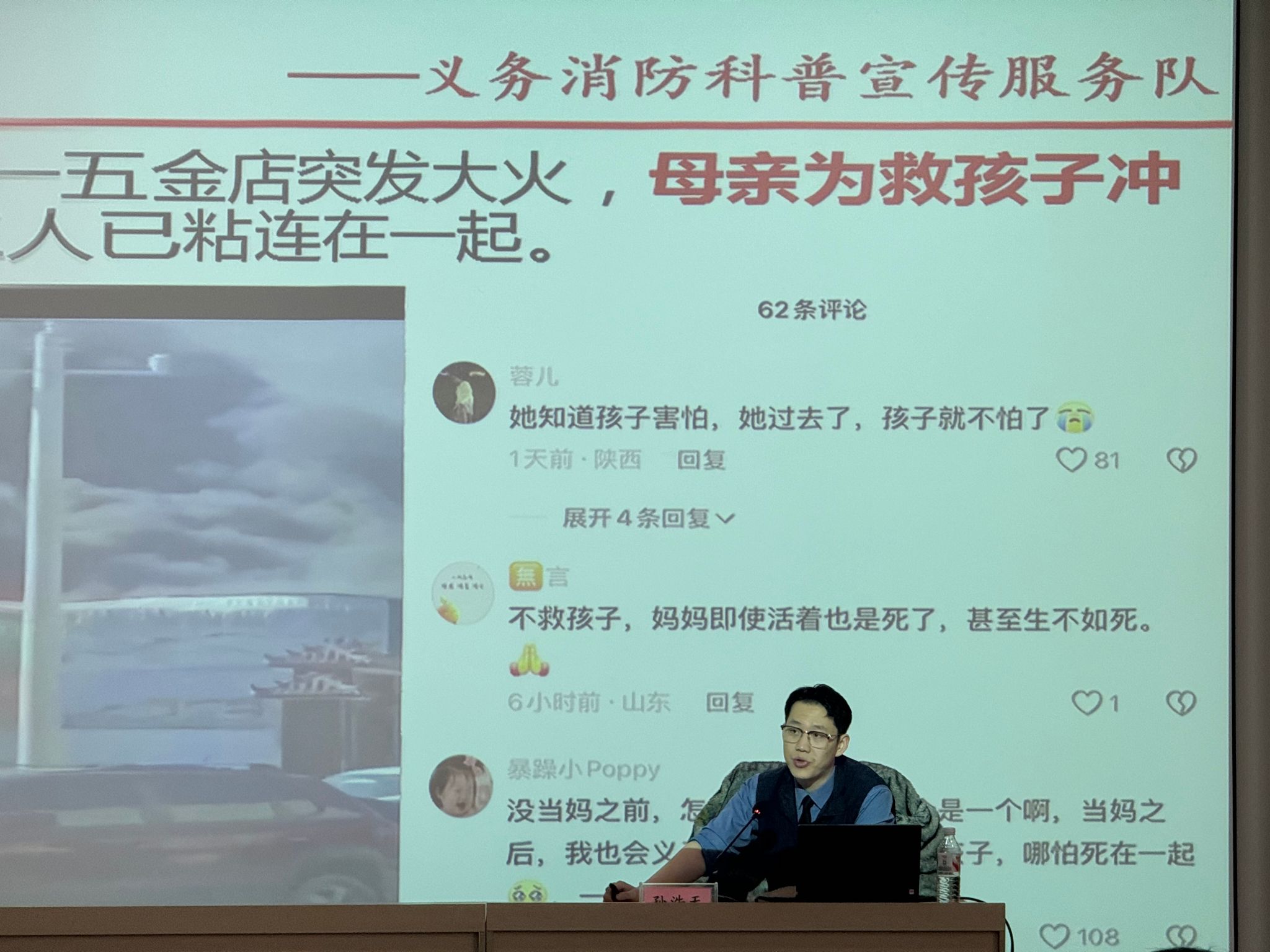 贾铁峰指出,近期多地发生的火灾事故,为校园消防安全工作敲响了警钟。全体参训人员要清醒认识当前校园消防安全形势,深刻认识本次培训的必要性和紧迫性。他强调,各重点岗位工作人员要切实提升消防安全素养,熟练掌握消防器材操作、火灾隐患排查、初期火灾处置等技能,确保一旦发生火情能够快速响应、科学处置、有效应对。他要求,各相关部门要严格落实消防安全主体责任,强化日常消防安全管理与隐患巡查排查,不断健全工作机制,压紧压实工作责任,坚决防范各类火灾事故发生,全力维护校园安全和谐稳定。