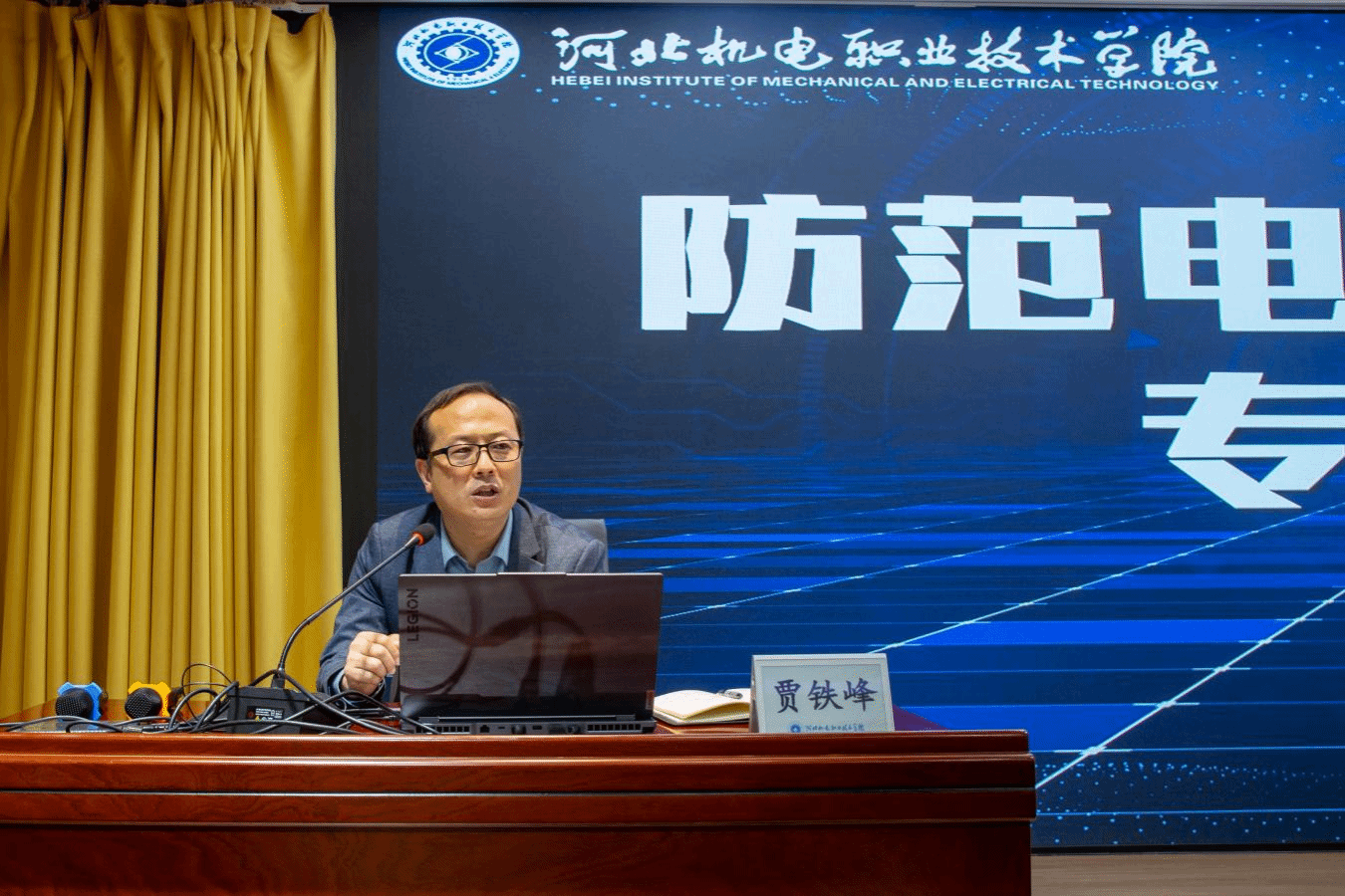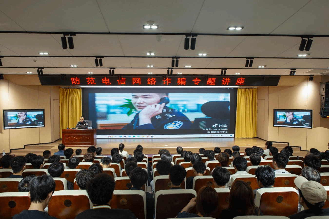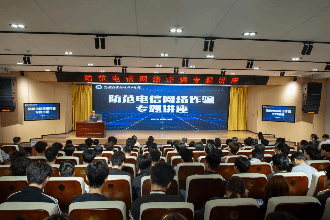 为切实提升全体师生防范电信网络诈骗的意识与能力,有效遏制校园电信网络诈骗案件发生,营造安全、和谐、文明的校园环境,4月16日上午,我校在德润楼一层京东报告厅举办防范电信网络诈骗专题讲座。本次讲座特邀邢台市公安局信都分局反诈中心民警马金鑫入校开展反诈宣传,安全工作处处长贾铁峰主持讲座,全校师生代表共计180余人参加讲座。