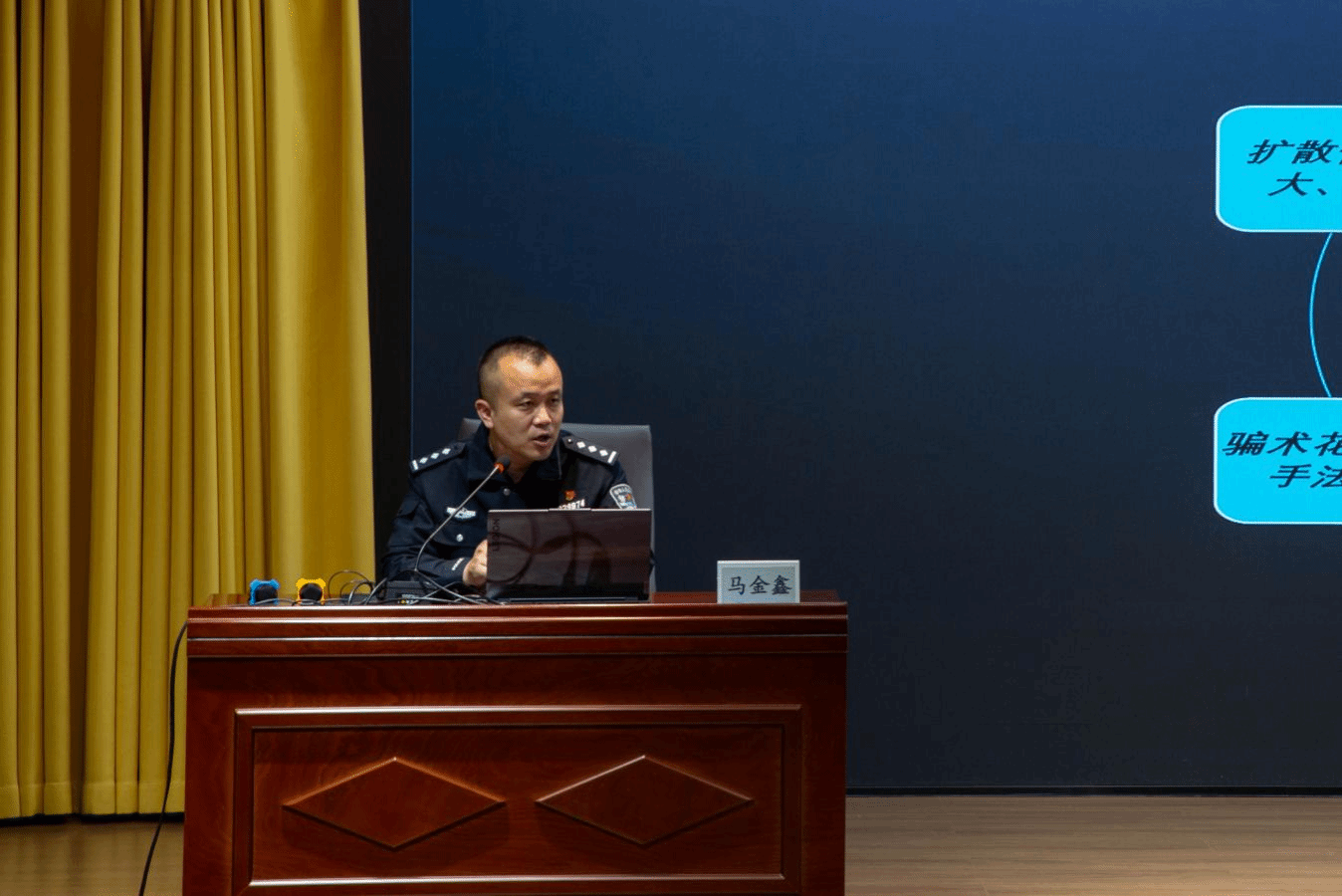 讲座期间,马金鑫结合近年来高校电信网络诈骗的真实案例,用通俗易懂的语言深入剖析了诈骗分子的作案套路、惯用手法及防范要点。针对高校师生群体特点,重点讲解了刷单返利类诈骗、冒充电商客服诈骗、虚假网络投资理财诈骗、AI深度伪造诈骗、冒充公检法诈骗、共享充电宝窃取手机数据诈骗等常见诈骗类型,详细拆解了每类诈骗的诱发场景、诈骗流程及识别技巧。马警官强调,当前电信网络诈骗犯罪形势严峻,诈骗手法不断翻新,具有隐蔽性强、手法多样、危害性大等特征,要切实增强个人信息保护意识,妥善保管各类敏感信息,不随意点击陌生链接,坚决杜绝违法违规行为。此外,他还向师生们详细指导了被骗后的及时报警流程及紧急处置方法,呼吁大家积极下载国家反诈中心APP,主动学习并普及反诈知识,共同营造校园反诈、人人参与的良好氛围。