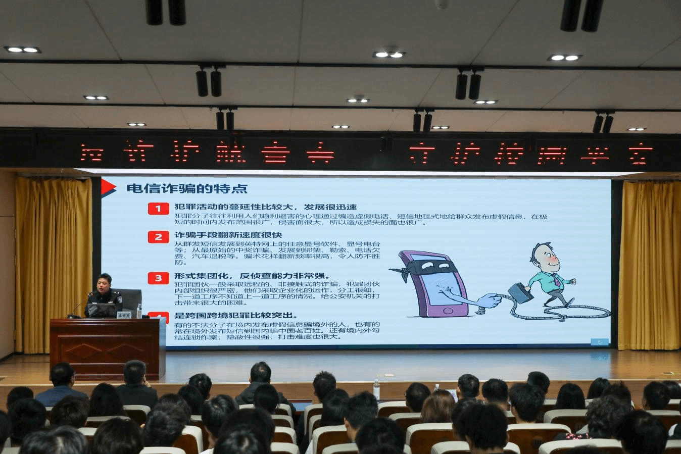 随后,王海威从法律维度展开讲解,深度普及帮助信息网络犯罪活动罪相关法律法规,详细阐释涉案违法犯罪带来的多重严重危害。法律层面,清晰讲明帮信罪量刑标准与违法惩戒后果;个人生活层面,涉案人员银行卡、电话卡将被依法管控冻结,信贷业务受限,严重影响日常消费与个人征信;前途发展层面,会对考公入伍、升学深造、出国留学、求职就业等人生发展道路造成永久性限制;家庭层面,不仅会给家人带来巨大精神压力与经济损失,还会损害家族名誉、招致不良社会影响。整场普法宣讲引导广大师生严守法律底线,自觉远离涉诈违法犯罪,持续强化法治安全意识,牢固筑牢反诈拒邪思想防线。