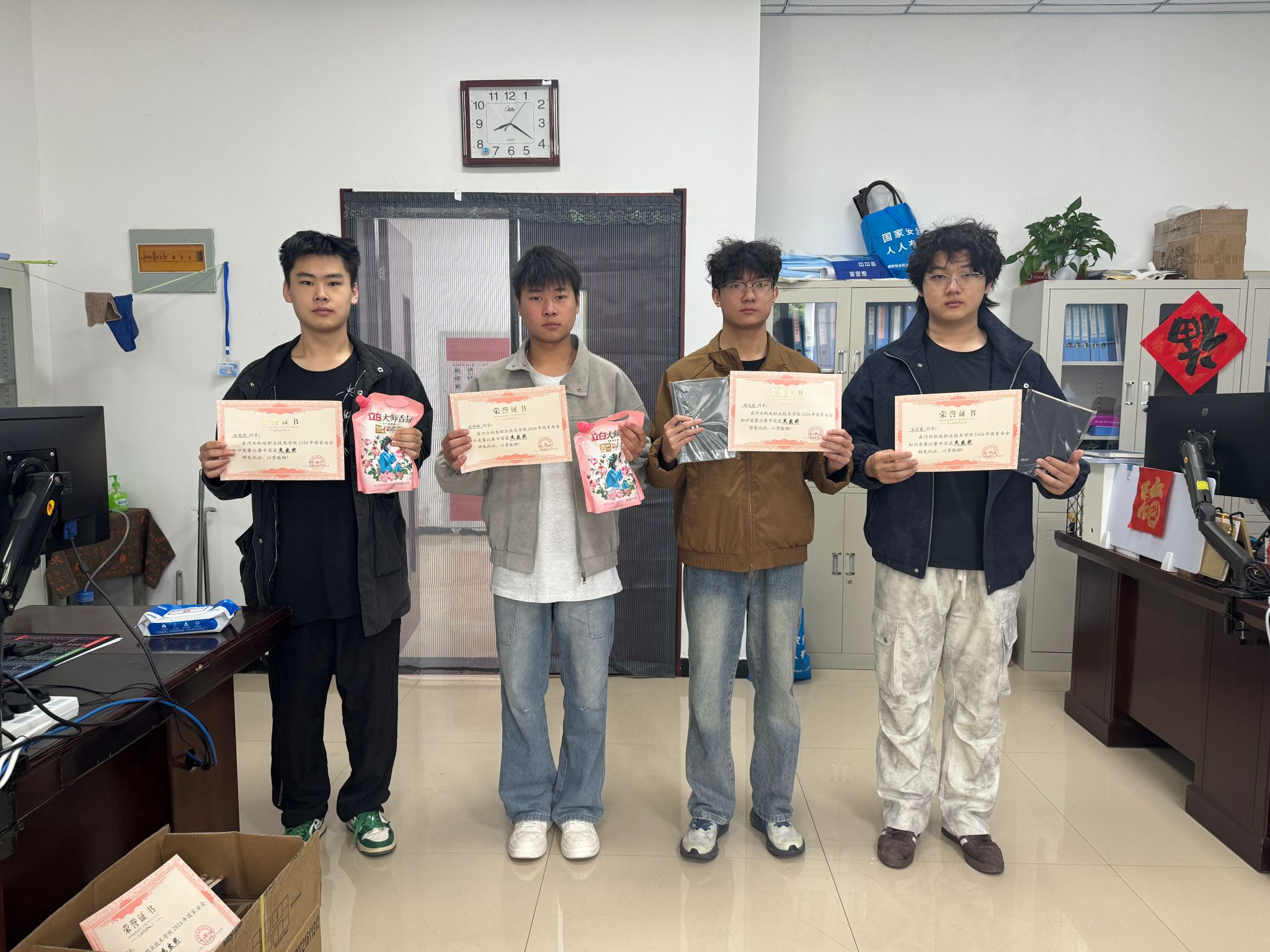 活动期间,全校师生积极响应、踊跃参与,以饱满的热情投入答题比拼。答题过程中,大家认真作答、沉着思考,严谨对待每一道题目,充分展现出扎实的国家安全知识储备、良好的精神风貌和强烈的责任担当。每一次谨慎选择,都是对国家安全知识的深化巩固;每一次认真提交,都是对“国家安全,人人有责”理念的自觉践行。本次竞赛严格按照答题正确率与答题时间综合排名,公平公正评选出各类奖项。其中,教职工组共评选出获奖教师20名,颁发遮阳伞作为奖品;学生组设杰出奖50名,颁发荣誉证书及洗衣液,同时评选优秀奖50名,颁发笔记本作为纪念奖,以表彰先进、激励全体师生共同学习践行国家安全知识。