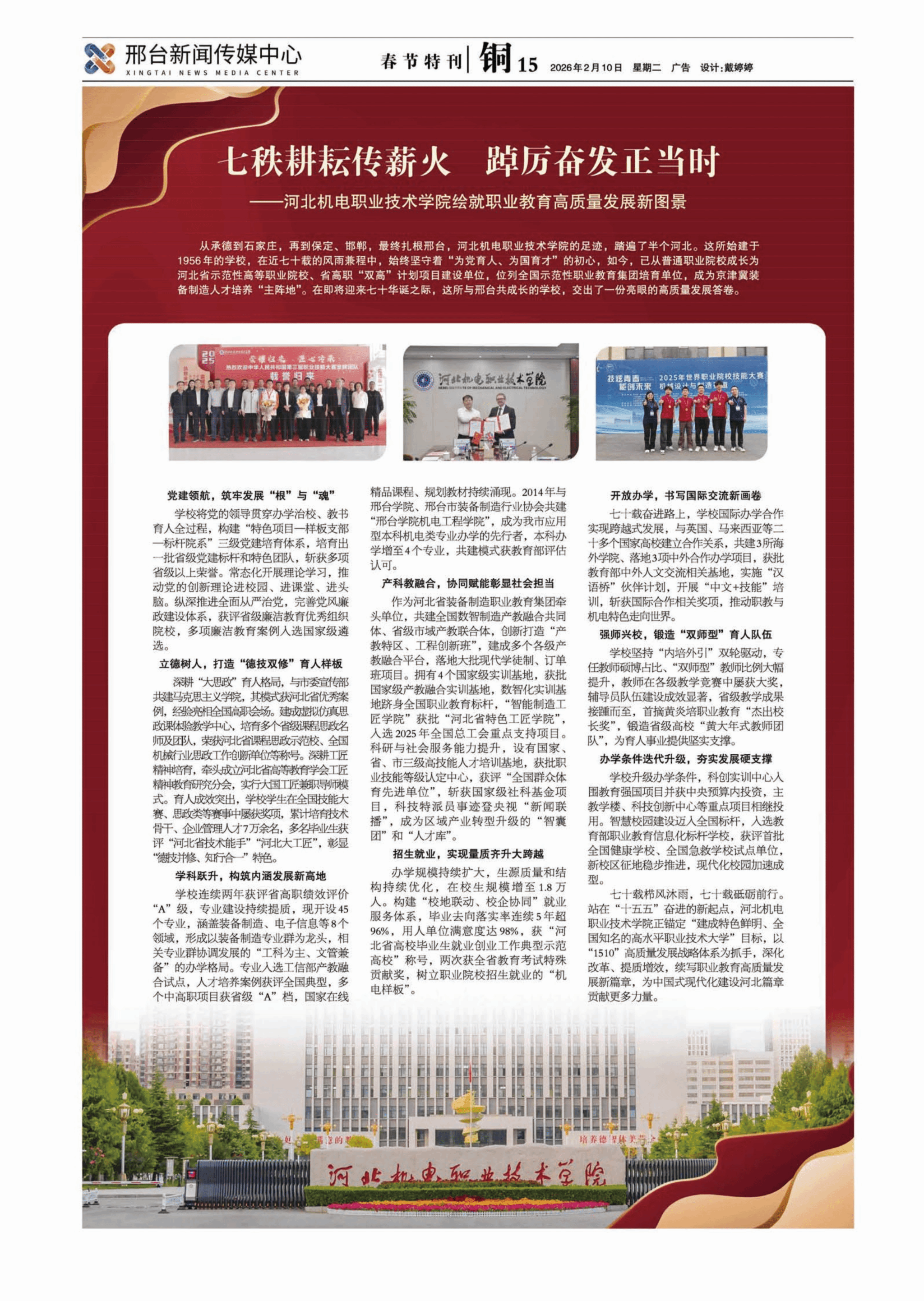 11月1日,2025年全国行业职业技能竞赛——第六届全国智能制造应用技术技能大赛“匠谷杯”河北省选拔赛在我校开幕。中国机械工业联合会教育培训部主任、机械工业教育发展中心主任郑丽梅,河北省人力资源和社会保障厅党组成员、省社保中心主任、党委书记赵进华,河北省总工会二级巡视员王景武,河北省装备制造行业协会会长陈建民,河北省装备制造行业协会党支部书记李玉民等省市领导17人,以及我校党委书记王晓凤,副校长赵晓东出席开幕式。...