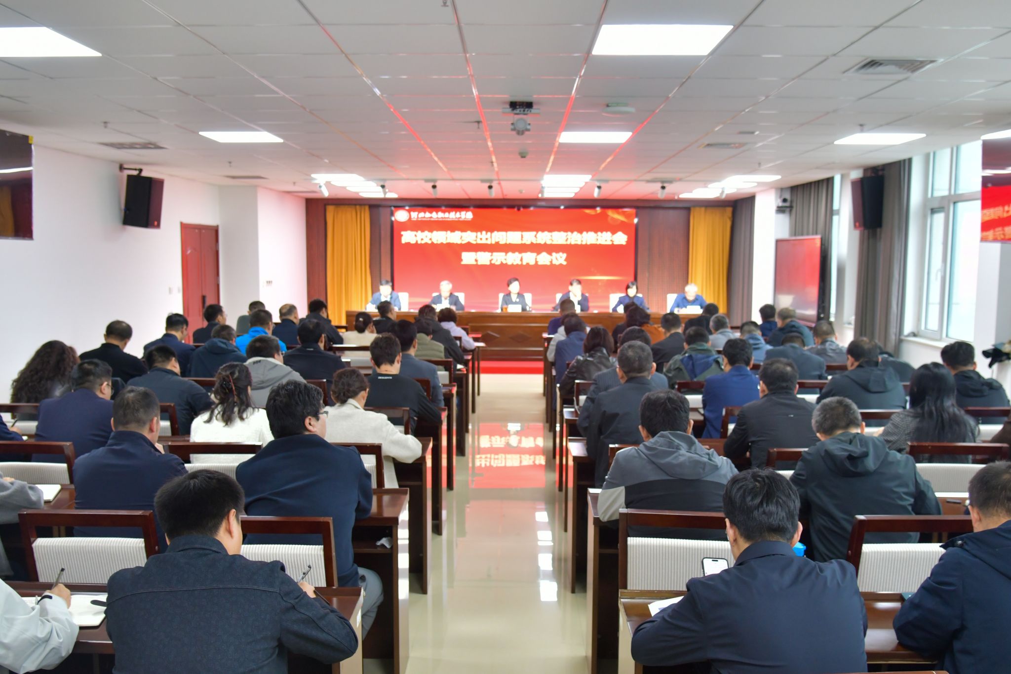 10月12日上午,学校在德润楼今麦郎会议室召开高校领域突出问题系统整治推进会暨警示教育会议,党委书记王晓凤,校长王彦林,党委副书记李朝鹏,纪委书记刘卫红,副校长张能云、赵晓东出席。会议由王彦林主持。
