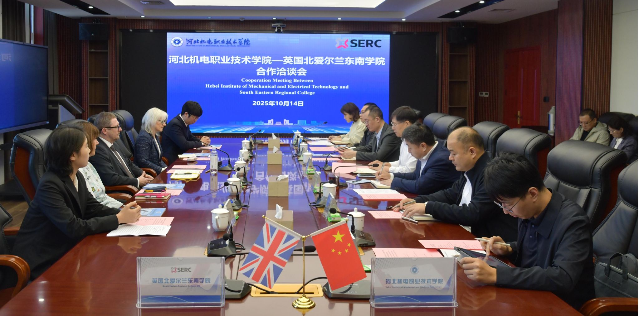 10月14日上午,英国北爱尔兰东南学院一行到我校交流访问。校长王彦林、副校长张能云,英国北爱尔兰东南学院校长托马斯·罗伯特·马丁、副校长希瑟·瓦莱丽·麦基女士、高级国际发展经理伊莱恩·麦基翁女士出席此次活动。