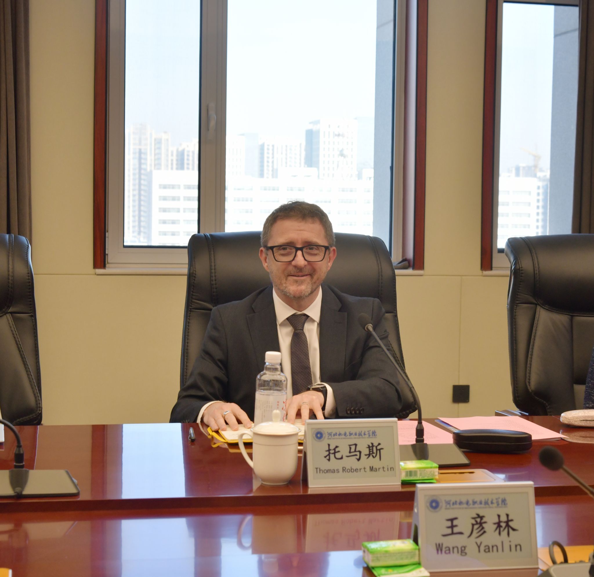 合作洽谈会上,王彦林代表学校向托马斯·罗伯特·马丁一行表示诚挚的欢迎,并介绍了学校的发展历程与办学成就。他指出,自去年建立合作关系以来,两校在人才培养、专业建设、文化交流等多个领域取得了丰硕成果。当前,两校共同举办“应用电子技术高等专科教育”中外合作办学项目,标志着双方合作迈入实质性阶段。此行不仅是对已有合作成果的充分肯定,更为两校未来关系的发展注入了新动力。