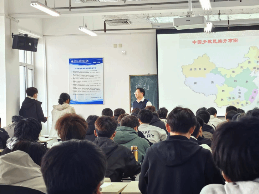 11月6日下午,校长王彦林走进德润楼702教室,为机械设计2501、2502班讲授了关于“铸牢中华民族共同体意识”的思政专题课。授课中,他将抽象的民族理论转化为可触可感的时代命题,为青年学子呈现了一堂兼具思想深度与情感温度的思政课。