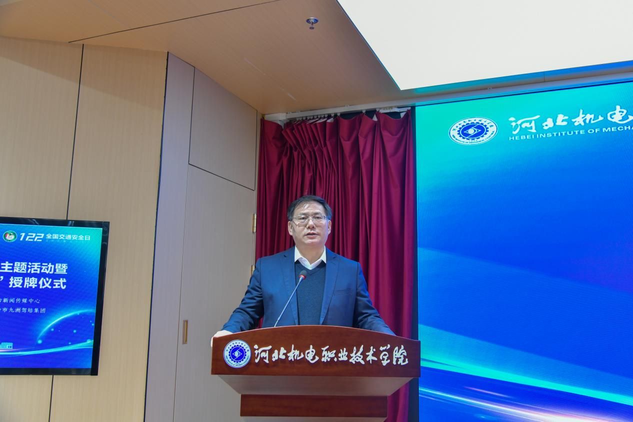 12月2日,第十四个122“全国交通安全日”主题活动暨“交通安全宣传教育基地”授牌仪式,在我校德润楼京东报告厅举行。校长王彦林、副校长张能云,邢台市公安局交通管理支队支队长魏强、工会主席赵如飞,邢台广播电视台副台长王雪峰、交通音乐广播总监王喆,邢台市九洲驾培集团总经理魏存沛、校长王明亮出席活动,相关单位负责人、我校师生代表、媒体记者等共计180余人参加活动。