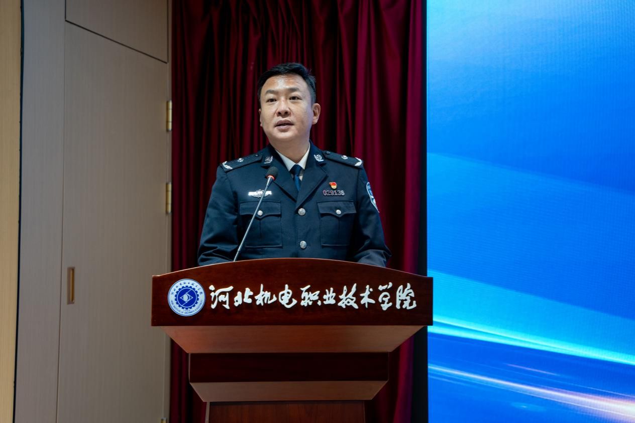 邢台市九洲驾培集团校长以“握好心中方向盘 走好人生幸福路”为主题讲授交通安全课。邢台市公安局交通管理支队民警王思雨现场实操讲解如何正确佩戴电动车头盔,并将这顶安全头盔赠予上台配合的学生。我校汽车工程系王昭然同学作为学生代表,以铿锵有力的语气发出倡议,引发全场共鸣,现场师生纷纷鼓掌响应。