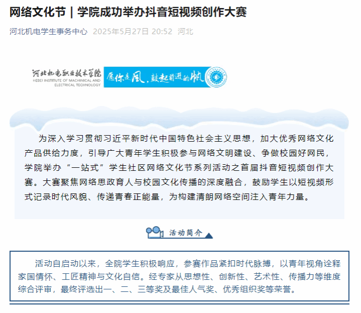 我校易班学生工作站始终坚持以“立德树人”为根本任务,致力于构建线上与线下深度融合的育人新阵地。线上,工作站持续加强思想引领与内容建设,打造主题鲜明的网络思政空间;线下,工作站紧密围绕学生成长需求,举办丰富多彩的校园文化活动,有效延伸服务触角,营造积极向上的校园文化氛围,切实促进学生全面发展。