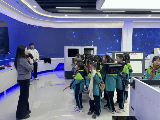 在河北省增材制造科普基地,学生们在基地讲解员的引导下,系统了解了增材制造(3D打印)技术的发展历程、基本原理及其在航空航天、医疗健康、智能制造等领域的广泛应用。在实践体验环节,学生们近距离观察了3D打印设备的运行过程,了解从建模设计到成品成型的完整流程,并参与了简单的互动体验项目,亲身感受科技创新带来的魅力。通过观察设备运行、触摸打印成品、互动问答,同学们对“增材制造”这一前沿科技有了具象理解,科技创新的种子在一次次惊叹中悄然萌芽。