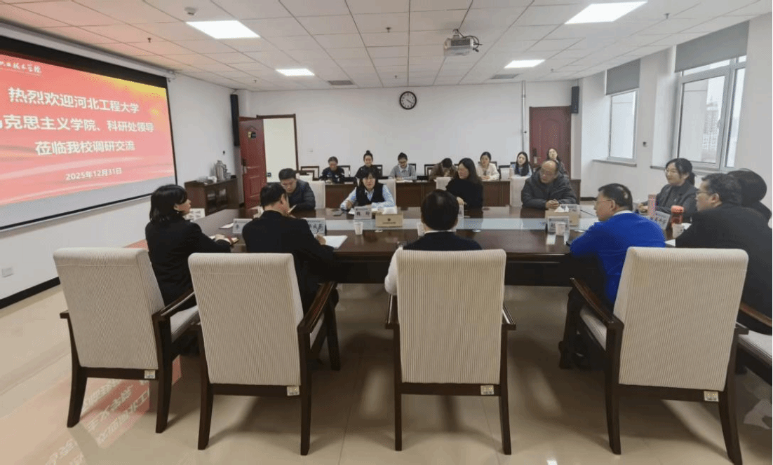 为更好地推动思想政治理论课建设与科研工作高质量发展,12月31日,河北工程大学马克思主义学院院长顾瑶、科研处副处长魏玲一行到我校调研交流,校长王彦林出席座谈会并讲话。