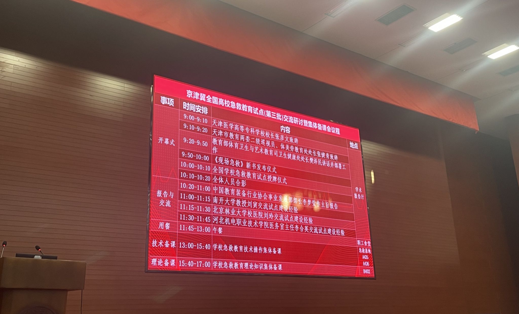 作为河北省高校代表,李合英以《以急救赋能校园 以实干守护健康》为题作经验分享,从组织制度根基、分层培训体系、硬件设施建设、实践宣传矩阵四大维度,系统阐述了学校急救教育的创新实践。汇报中,"党政双组长" 领导机制、覆盖新生与重点岗位的分层培训模式、15 台 AED 全域部署的硬件保障、将急救融入社会实践活动、"理论 + 实践 + 宣传" 的立体化工作矩阵等特色举措,全面展现了学校将急救教育融入校园发展全局的系统思维,为京津冀高校提供了可复制、可推广的实践样本。
