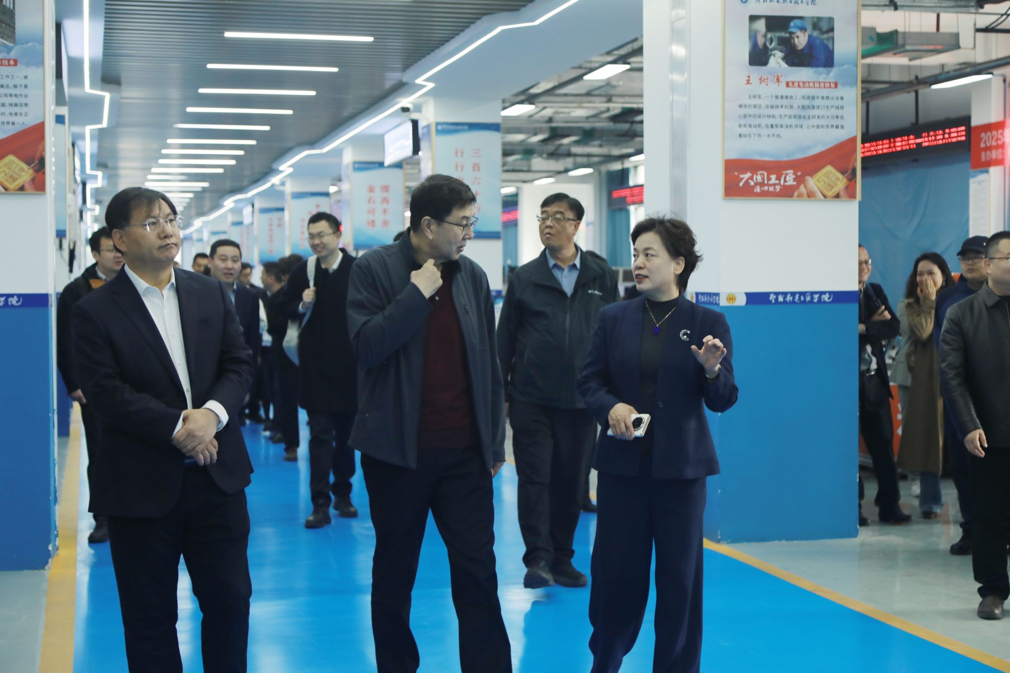 与会人员还参观了学校科技创新中心、实训楼等地,实地了解学校专业建设、实习实训平台搭建及产教融合等情况。