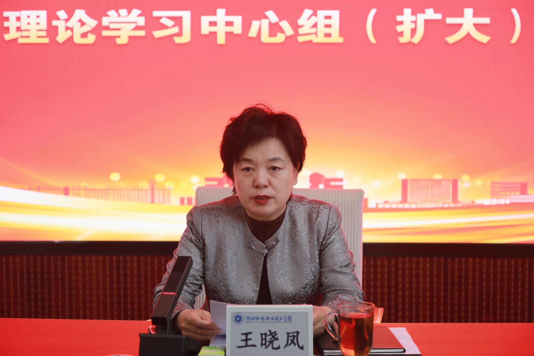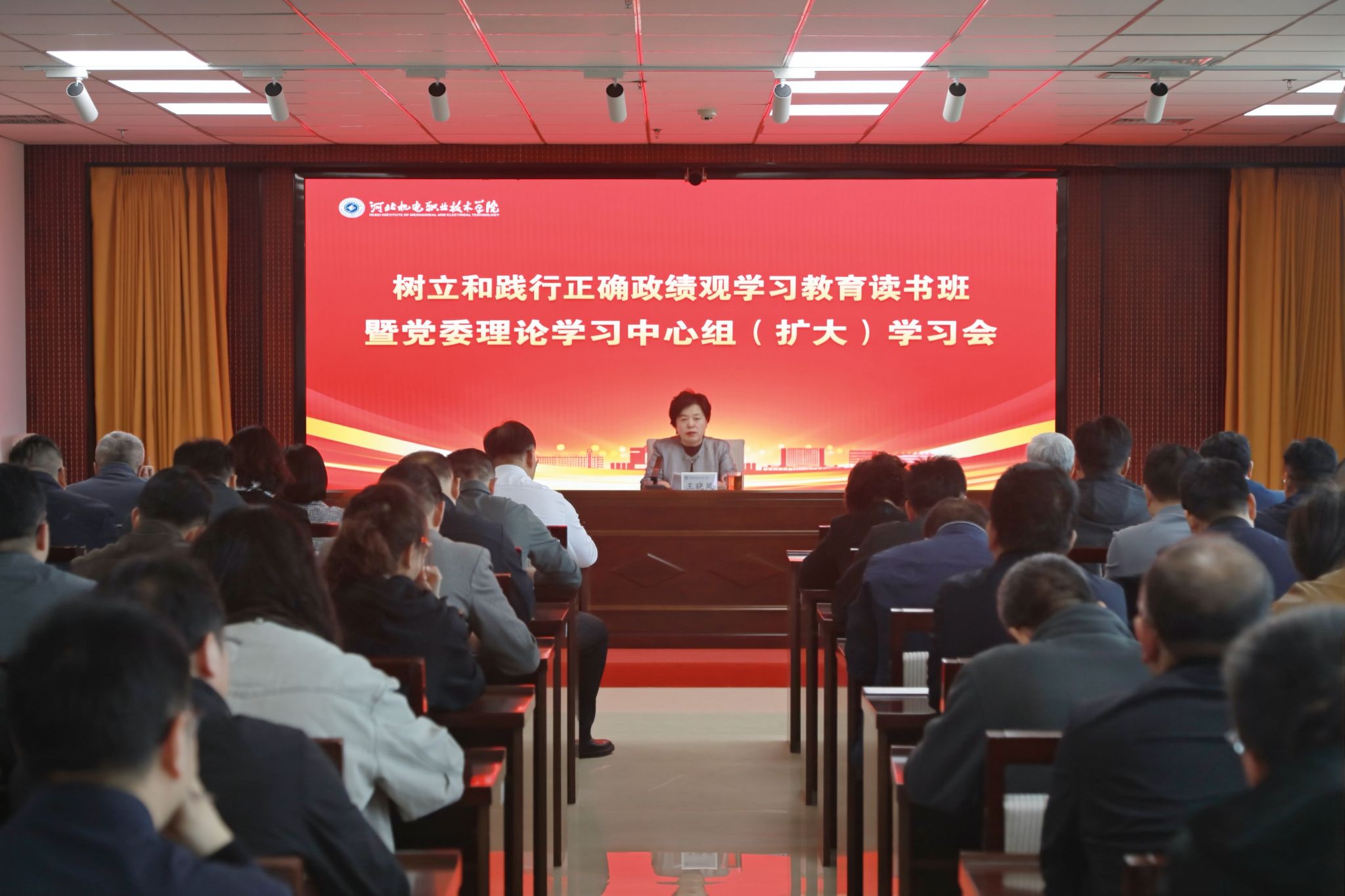 4月7日下午,学校在德润楼今麦郎会议室举办树立和践行正确政绩观学习教育读书班暨党委理论学习中心组(扩大)学习会。党委书记王晓凤主持会议并讲话。