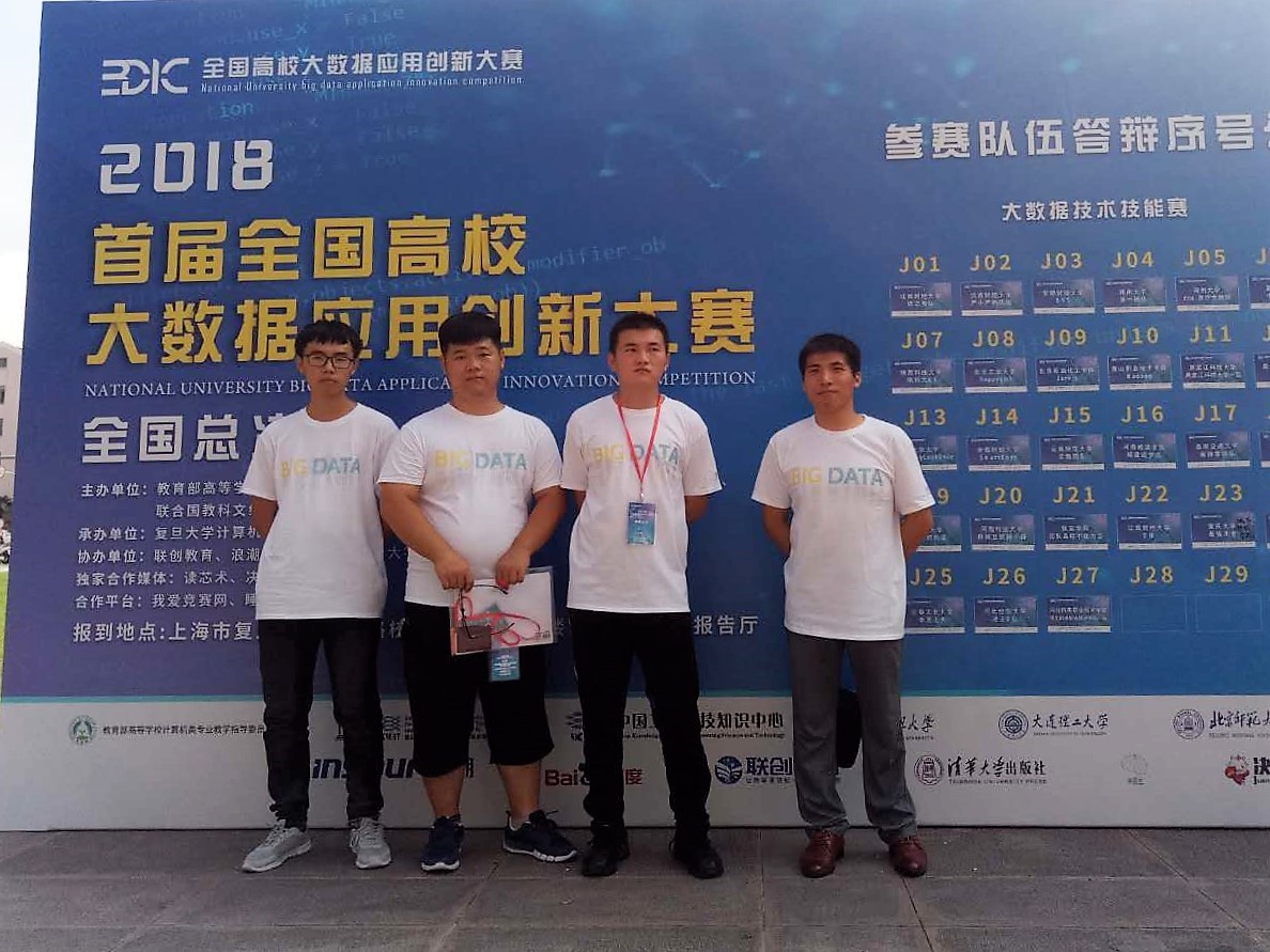 9月16日,2018首届全国高校大数据应用创新大赛全国总决赛在上海复旦大学落下帷幕,我院信息工程系软件1603班的蒙古族学生额日敦、移动开发1601班韩文博以及软件1601班赵志超组队参赛,荣获大数据技术技能赛三等奖。