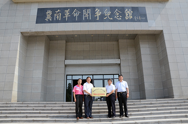 在冀南革命斗争纪念馆前,举行了建立我院爱国主义教学实践基地仪式。俆丙谦书记和张冷白主任交接了铜牌。张主任代表纪念馆向我院师生代表赠送了近年来烈士陵园整理编印的《冀南英烈事迹选编》《冀南英烈》《马国瑞纪念文集》等书籍、光盘和纪念章。学院党委副书记、纪委书记徐丙谦代表学院感谢陵园管理处的大力支持,建立爱国主义教学实践基地,为向大学生开展爱国主义教育提供了平台,将积极引导大学生到基地参观学习,同时表示聘请陵园领导和讲解员担任我院思想政治理论课实践教学校外指导教师,欢迎到学院为师生讲解革命烈士英勇事迹,进行爱国主义教育。
