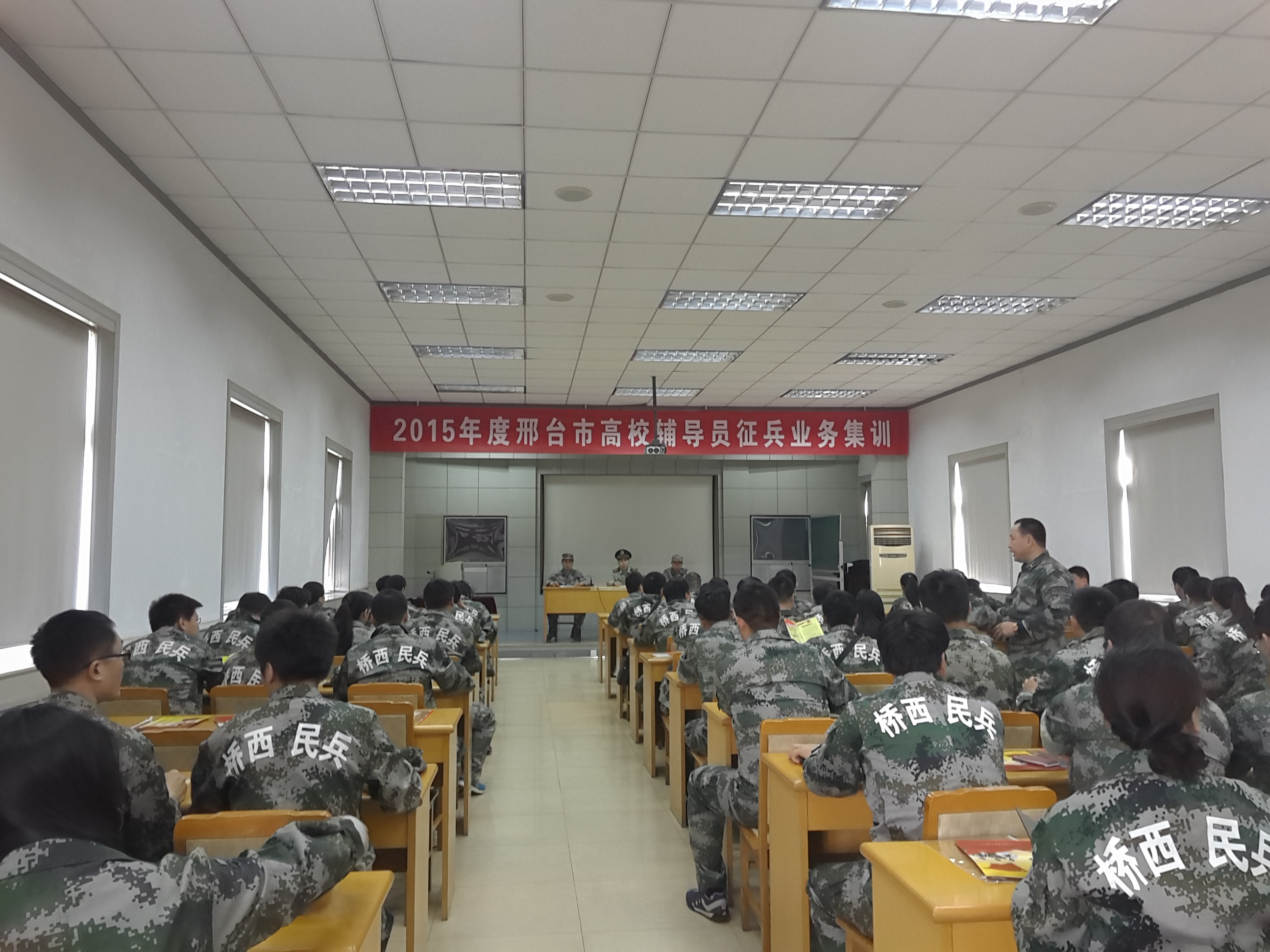 为努力做好我院今年征兵工作,确保完成征集任务,号召和动员我院适龄大学生积极踊跃报名参军,为献身国防、建功军营贡献青春和力量。 5月8日上午 ,学生工作部部长周卫忠带领全院辅导员参加了2015年邢台市高校辅导员征兵业务集训。
