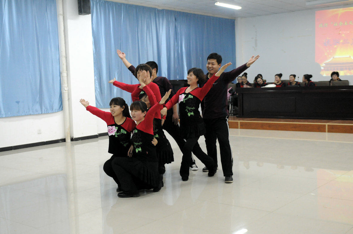 为了活跃教职工文化生活,推动全民健身运动的开展,12月9日下午,以 “践行社会主义核心价值观”为主题的全院教职工广场舞比赛在C105会议室隆重举行。这是继本学期教职工踢毽子、跳绳、羽毛球和乒乓球比赛以来,又一次大型健身比赛。来自全院各分会和退休职工队伍共10支代表队的100多名舞者为我院广大教职工带来了一场积极向上、激情四射的精美文化盛宴。学院党委副书记、纪委书记、院工会主席徐丙谦、副院长赵国增、副院长王振京、副院长张兆隆、副院长曹振军到场观看了比赛。
