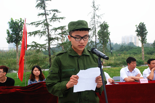 汽车工程系汽车检测1404班吴琦同学代表全体军训新生发言,表示要严格要求自己,服从管理,虚心学习,以饱满的热情、顽强的毅力来展示同学们奋发向上的精神风貌,为学习、生活和人生历程增添华美的篇章。