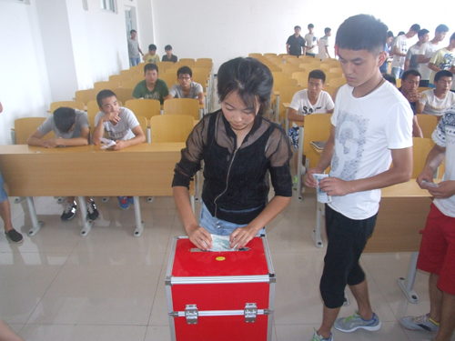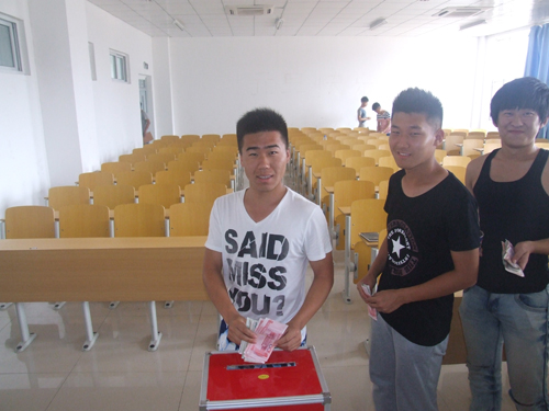 2014年6月24日下午,学生工作部在C107教室举办了“献爱心捐款活动”。学院团委书记籍宇老师主持捐款仪式。学生工作部周卫忠部长向全院学生发出倡议:希望同学们积极奉献爱心,踊跃捐款,携起手来,用温情点燃身处困境学子的希望。