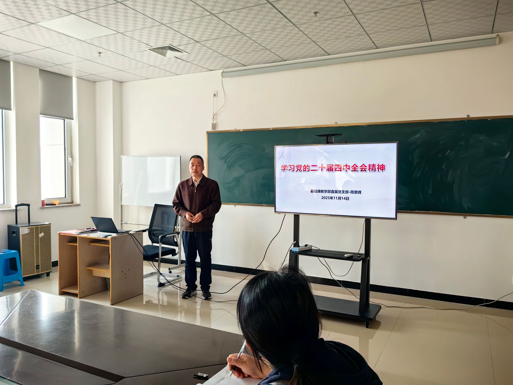 近日,基础课教学部聚焦党的二十届四中全会精神开展学习活动,由基础直属党支部书记周景辉主讲,基础课教学部胡占稳主任、刘志军主任及全体教师共同参与了本次活动。