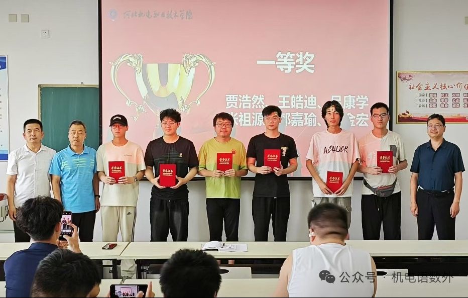 2025年6月27日,由我校基础课教学部主办的第八届数学建模比赛圆满结束。本次比赛吸引了来自全校各系部的50余支队伍同台竞技,经过三天的激烈角逐(5月23日至5月26日),最终评选出一等奖6队、二等奖10队、三等奖14队。6月27日下午,颁奖典礼在德润楼711隆重举行,基础课教学部周景辉书记、胡占稳主任、刘志军主任、数学教研室教师及全体获奖学生共同出席。