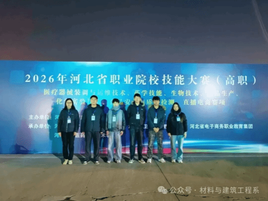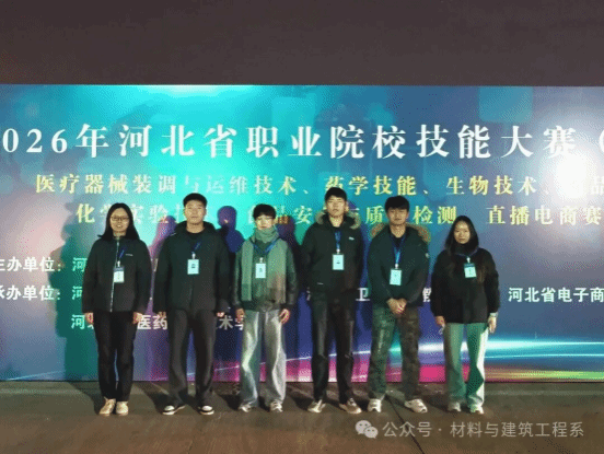 2025年12月23日,由河北省教育厅主办,全国化工医药职业教育集团、河北省化工医药职业教育集团协办的2026年河北省职业院校学生技能大赛(高职组)“化学实验技术”赛项在河北化工医药职业技术学院圆满落幕。经过激烈角逐,我校材料与建筑工程系理化测试与质检技术专业学生张润泽、陈垚和沈建豪、白天赐组成的代表队在苏奥、孟佳靖老师的悉心指导下,凭借扎实的专业知识和出色的现场发挥,分别荣获大赛二等奖和三等奖。