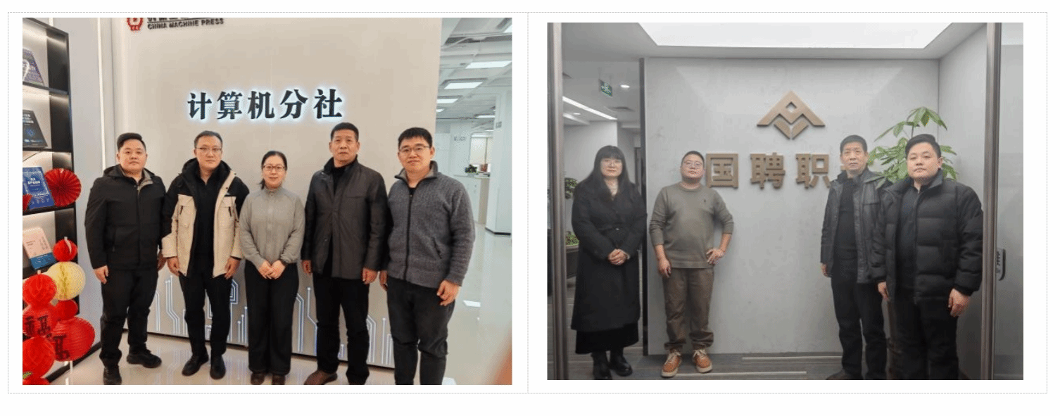 在北京,团队先后走访了三家单位:来到机械工业出版社,双方围绕教材开发、课程资源建设、新型活页式教材编写等进行了探讨,为提升专业教学内容的实用性与前沿性奠定了合作基础;在北京优云集团,团队看望了在此实习的学生,详细了解他们的工作内容与成长收获,并与企业就深化校企合作模式、共建实习基地等交换意见;参观国聘职达时,双方围绕毕业生就业推荐、校企联动招聘、职业规划指导等方面进行沟通,为后续拓宽毕业生就业渠道创造了条件。此行进一步强化了与在京企业的联系,为后续推动学生实习就业一体化提供了有力支撑。