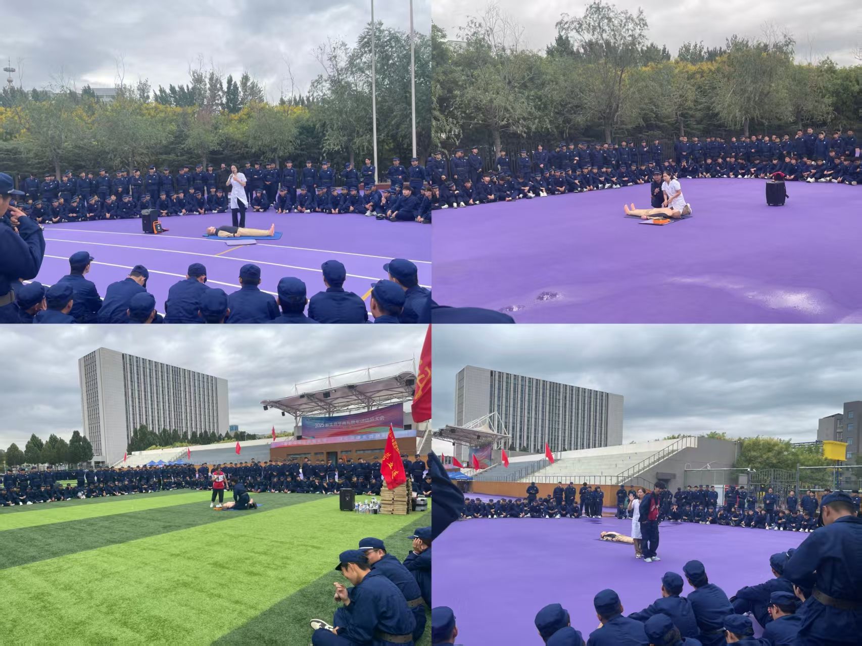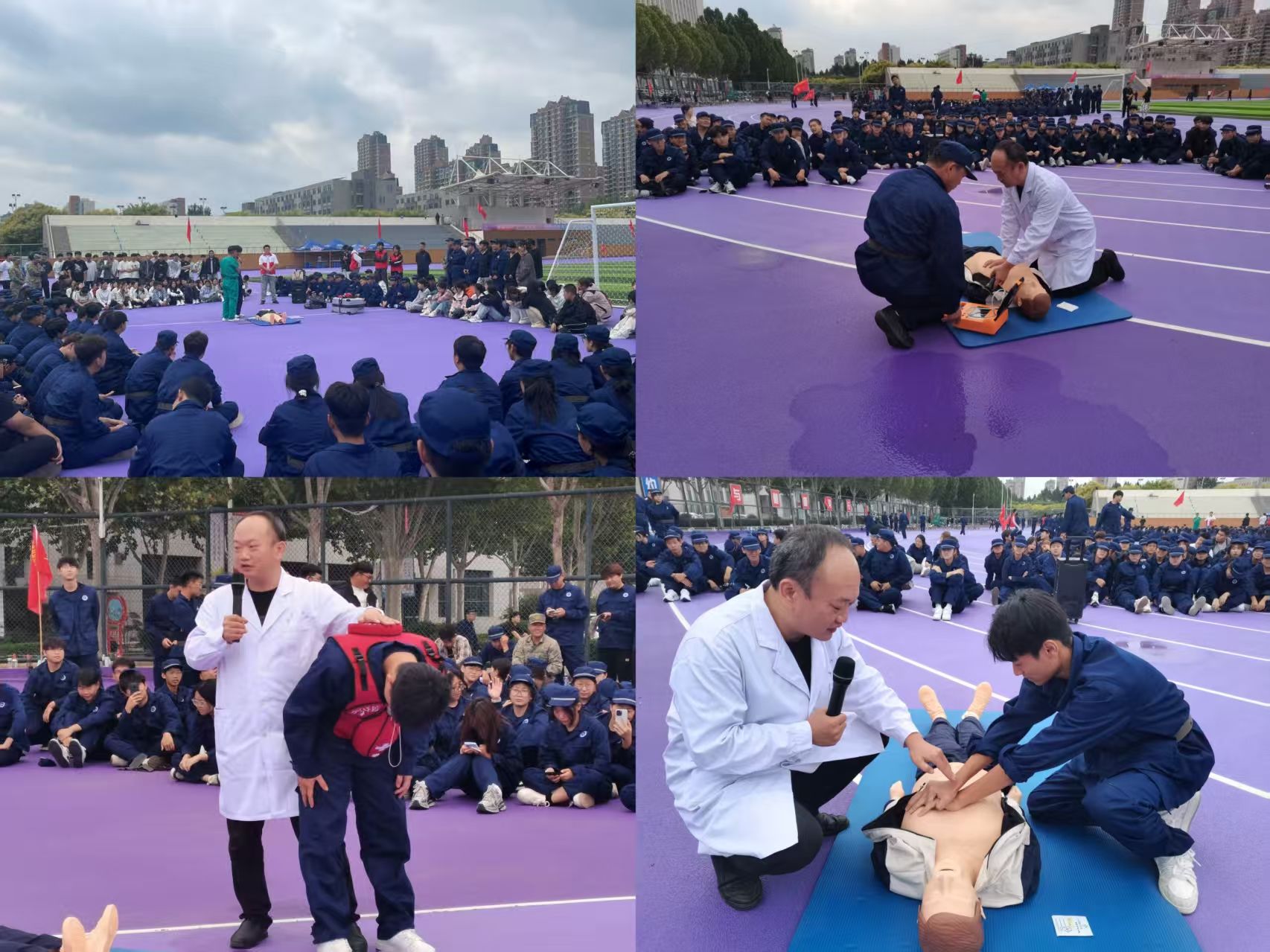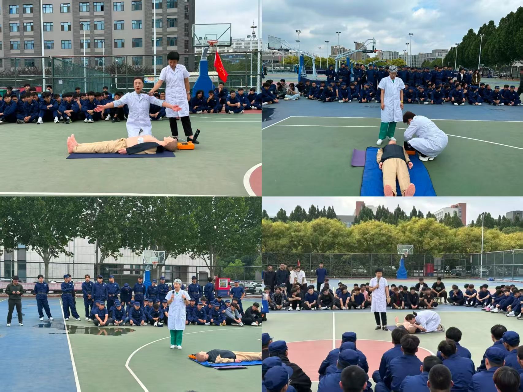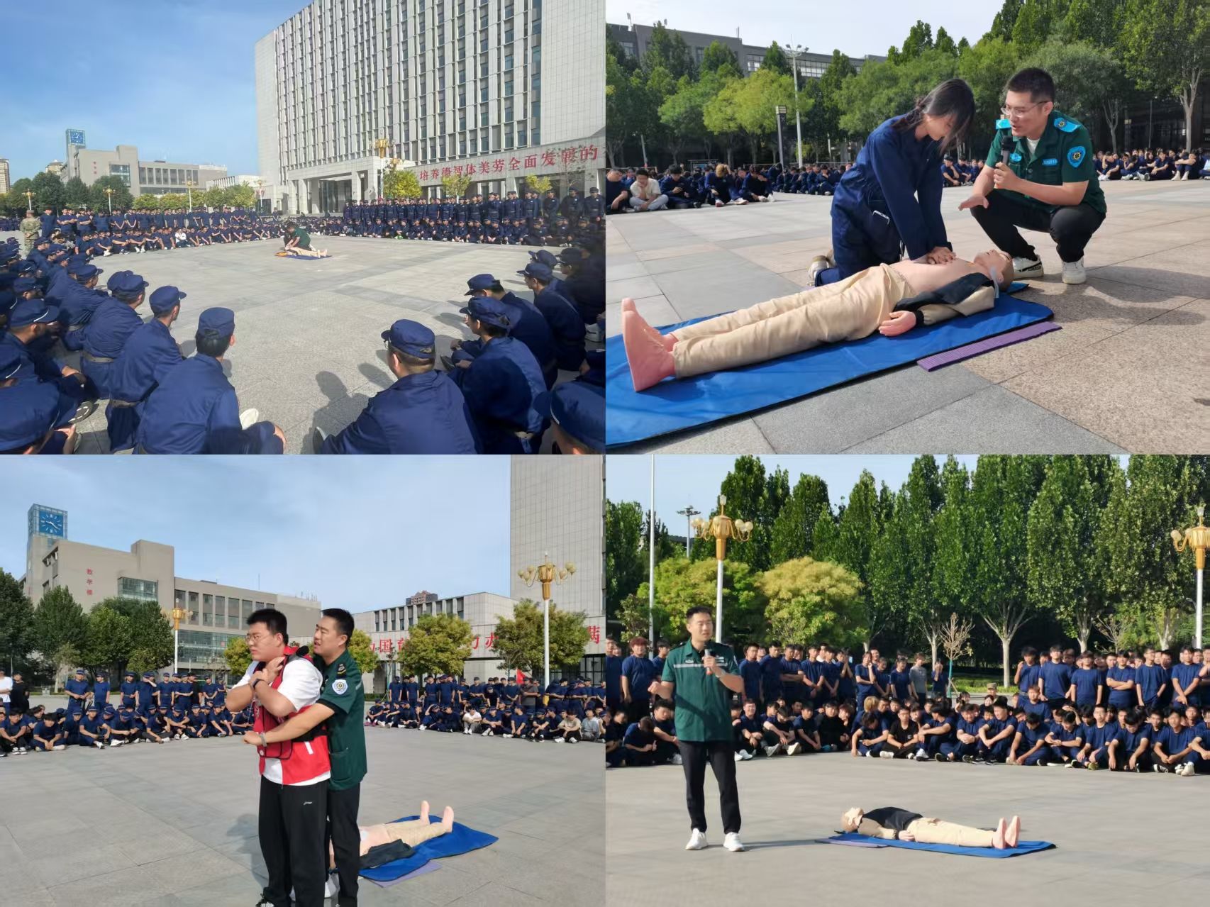 为筑牢校园安全防线、提升新生应急救护实战能力,我校结合新生军训计划,于 9 月 17 日至 19 日,由校医务室牵头,联合邢台市人民医院、河北省第一荣军优抚医院、邢台医学院附属二院东院区三大专业医疗机构,为全校约 6500 名 2025 级新生开展应急救护技能专项培训,系统传授心肺复苏(CPR)、自动体外除颤仪(AED)操作及海姆立克急救法等核心技能。