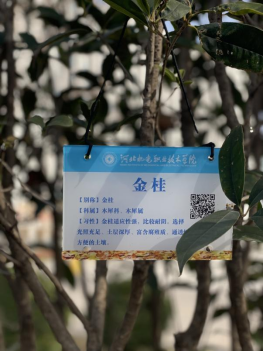 为确保植物铭牌内容的准确性、科学性与实用性,后勤与资产管理处前期组织专业技术人员开展校园植物全面普查工作,对校内乔木、灌木、地被、花卉等114种植物进行逐一登记,详细记录每种植物的学名、科属、生长习性等核心信息,为铭牌制作奠定坚实基础。在设计环节,除精准呈现植物基础信息外,特别创新加入百度百科“二维码”查询功能,师生通过手机扫码即可便捷获取植物详细科普知识,实现学校“一码解锁植物故事”,既提升了科普的趣味性与实效性,也传递了绿色低碳、珍爱自然的环保倡议。