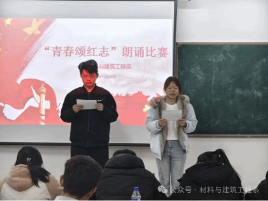 为弘扬红色文化、引导青年学生传承革命精神,11月27日,材料与建筑工程系在晚自习教室成功举办“青春颂红志”朗诵比赛,以青春之声传递红色力量。