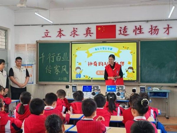 11月28日,信息工程系专业教师组成的科普志愿者服务队,带领工程创新班学生走进育红小学三(1)班,成功举办了“AI启蒙”科普活动。高安迪、梅成芳、周莹等教师精心设计教学环节,将前沿技术转化为生动有趣的互动体验,为孩子们开启了一场科技探索之旅。
