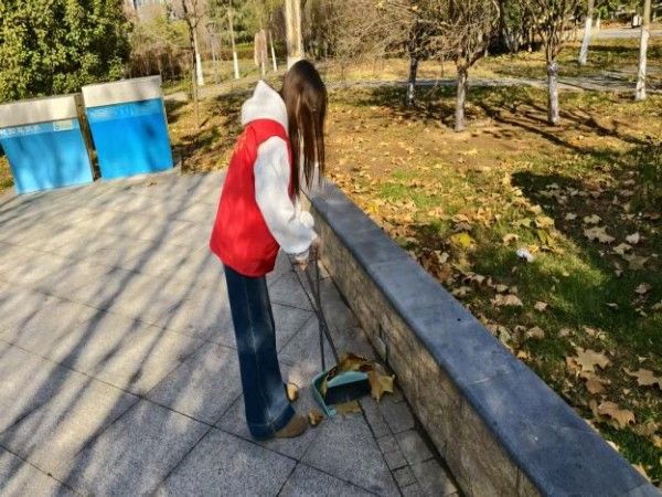 活动现场,志愿者身着志愿马甲,手持打扫工具迅速就位。大家分工有序、默契协作:有人沿步道挥帚清扫落叶,沙沙声里铺就洁净之路;有人将垃圾倒入垃圾桶。以“不怕脏、不惧细”的劲头守护每一处洁净。