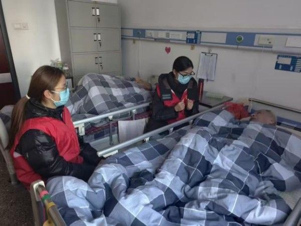 培训结束后,志愿者们分组前往各病房,用一声声亲切的问候打破陌生感,迅速营造出温馨融洽的氛围。在陪伴过程中,志愿者们化身为“暖心倾听者”和“贴心小助手”,耐心聆听老人们讲述人生故事,时而点头回应,时而轻声安慰,让老人们在倾诉中感受到尊重与理解。