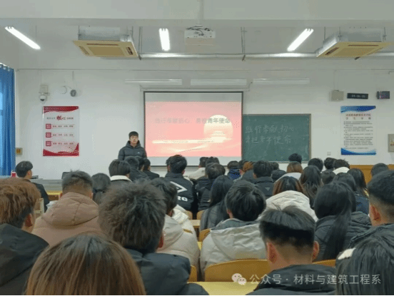 为深入学习贯彻新时代青年工作重要思想,引导青年学子厚植奉献精神、强化使命担当,推动奉献精神内化于心、外化于行。材料与建筑工程系于2025年12月5日下午,在各班晚自习教室展开了“践行奉献初心,勇担青年使命”主题团课活动。