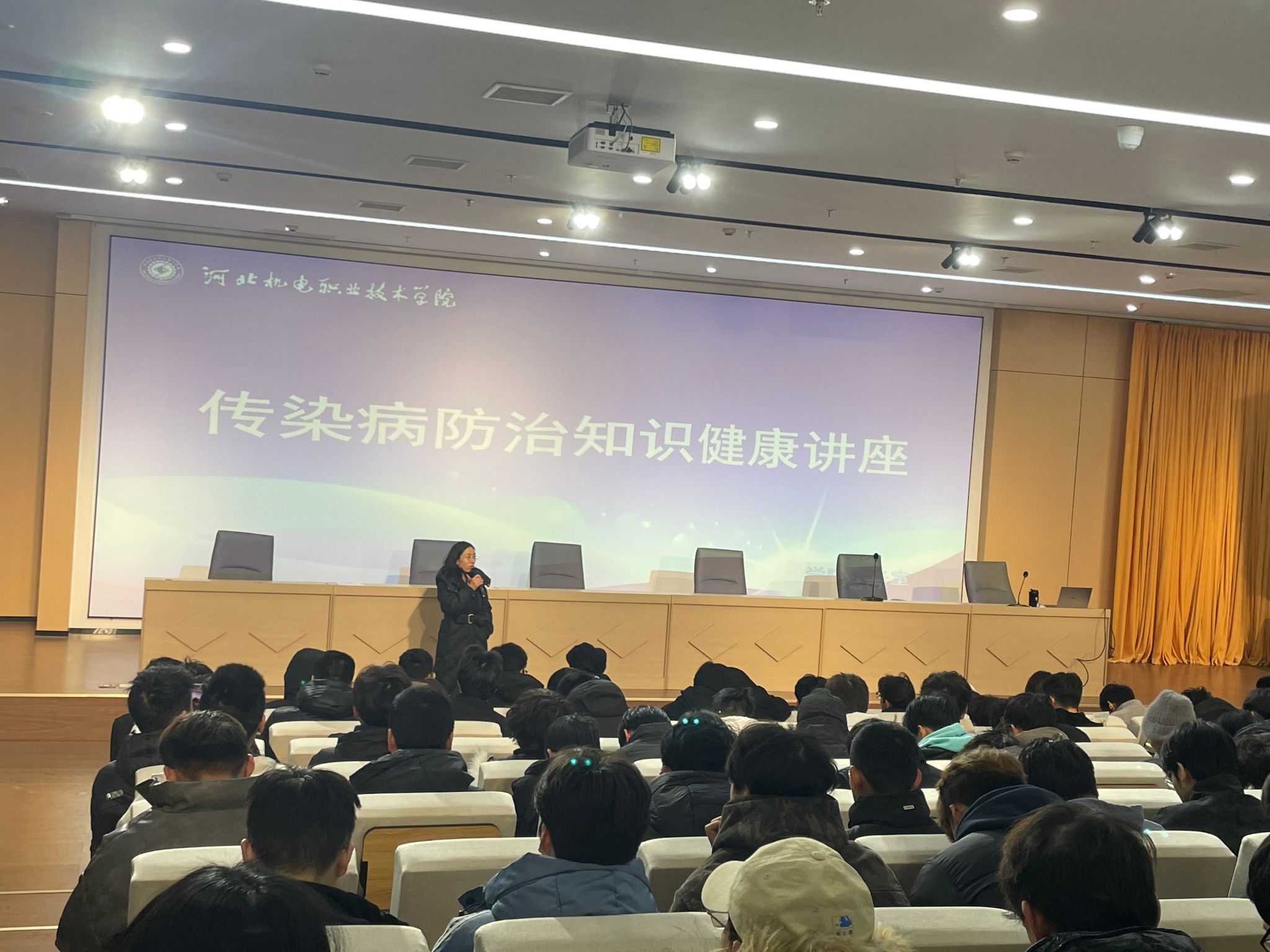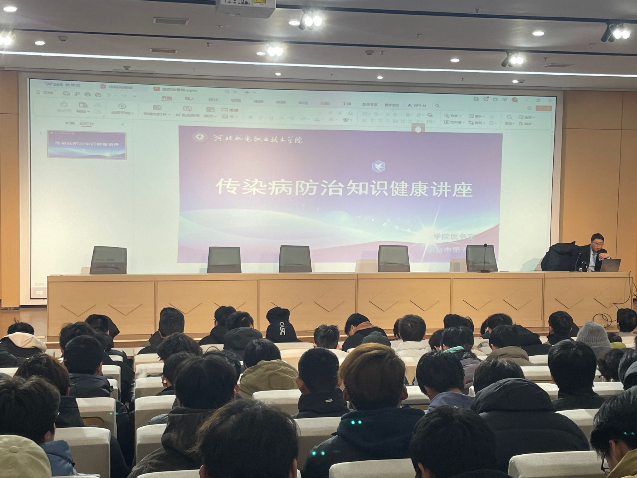 12 月 12 日下午,学校医务室联合大学生自我管理健康工作室共同举办的传染病防治专题讲座,在德龙报告厅顺利举行。本次讲座特别邀请邢台市第五医院石研医生及其医学团队,围绕结核病、流行性感冒、诺如病毒三大常见校园传染病的科学防治展开系统讲解,旨在全面提升师生对传染病的认知水平与防控意识,筑牢校园公共卫生安全屏障。讲座由医务室主任李合英主持,学院200余名师生代表参与。