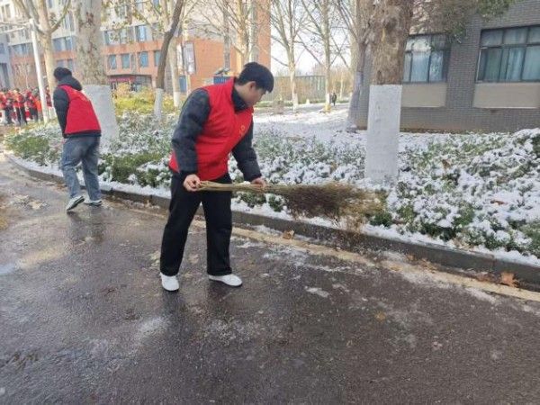 12月13日,为积极响应校团委清理校园道路积雪的号召,信息工程系青联部组织志愿者开展扫雪除冰行动,全力保障校园道路畅通与师生出行安全。