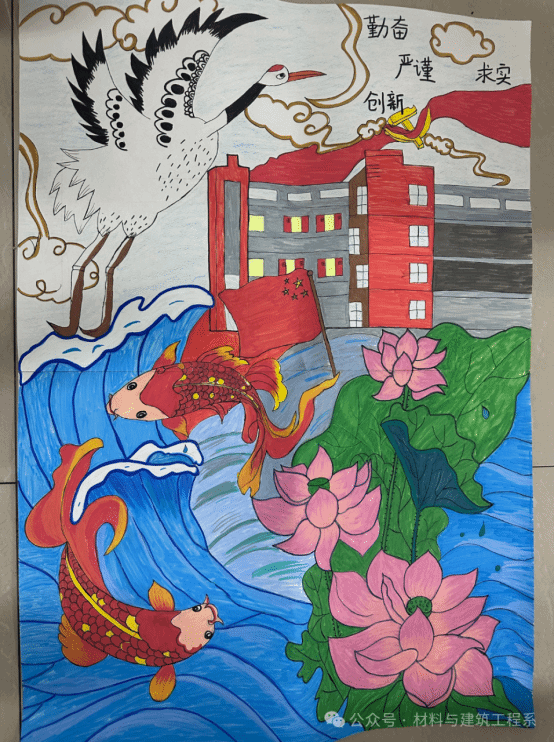 此次“学风入画,创意生花”创意绘画大赛的圆满落幕,不仅为建材学子搭建了挥洒创意、展示才华的舞台,更让抽象的学风建设以鲜活灵动的画面形式深入人心。未来,材料与建筑工程系也将继续探索学风建设与校园文化活动融合的新路径,以更多元的形式丰富校园文化生活,让勤学、善思、笃行、创新的优良学风,在校园的每一个角落落地生根、蔚然成风。