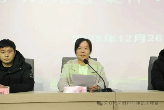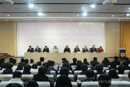 为树立先进典型,营造比学赶超、积极向上的校园氛围,材料与建筑工程系于2025年12月26日下午在德龙报告厅召开2025年秋季学期先进集体、先进个人表彰大会。系党总支副书记赵海志、团总支书记赵媛媛,全体专职辅导员及受表彰学生代表参加本次会议,仪式由赵媛媛主持。
