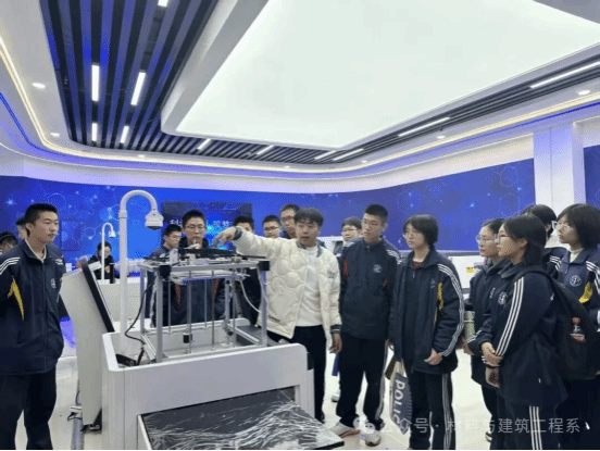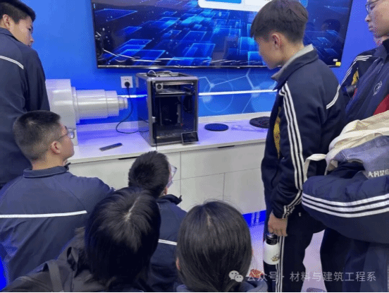 在设备展示与互动体验环节,基地讲解员现场演示了多种3D打印设备的运行过程,详细讲解不同打印工艺和材料特性,并引导学生近距离观察成形细节,解答同学们提出的技术问题。学生们积极参与交流,现场学习氛围浓厚,对现代制造技术展现出高度关注和浓厚兴趣。